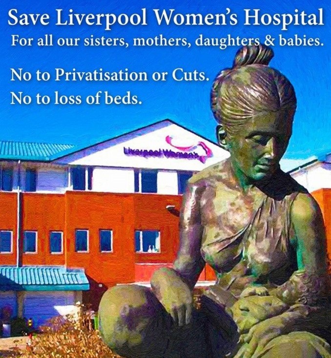February 2019. Save Liverpool Women’s Hospital is still campaigning for a fully funded Liverpool Women’s Hospital, for the NHS, for all our mothers, sisters, daughters, friends, and lovers, and for the babies. We campaign with the public and with trade unions, women’s organizations and pensioners to challenge the people with the power to make these decisions. The real decision makers are the Government, their friends in the multinational health care companies, and their local appointees. In reality, an ordinary doctor or nurse has little say., and few approve of what’s happening to the NHS.