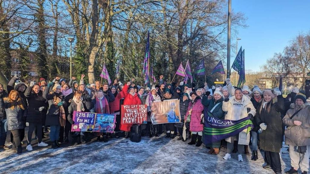 5. A trade union is when workers come together to improve their conditions and pay.This is an epic trade union struggle.These women and men at Arrowe Park and Clatterbridge have stood together in solidarity over a long time, in sunshine rain and snow determined to protect and improve their wages, their working conditions.They are quietly demanding the respect due to them from their bosses and the wider employer.In so doing that they defend far more people than their own union branch.