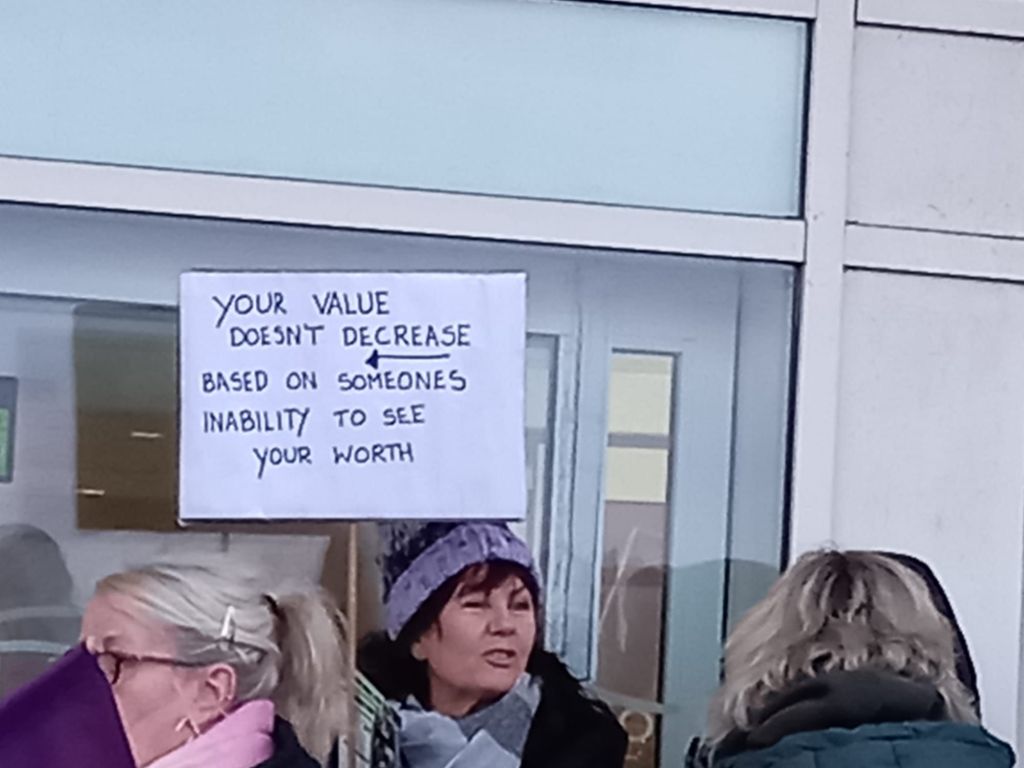 3. This is largely a women’s workforce. ( Big cheers to all the fellas on the picket line, too). These workers provide care, an essential of human life in all its glories, all its ups and downs, at all ages and traditionally provided by women, so underpaid.Care matters.Care is important, life affirming workHowever, care is really unde valued and underpaid in this society, by this government and by bosses.It’s up to the community to champion care.So lets support these workers
