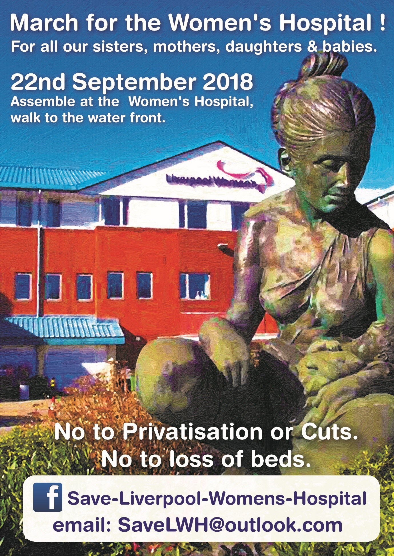 - Full public funding, sufficient to allow Liverpool Women’s hospital to thrive, for all our sisters, mothers, daughters and babies